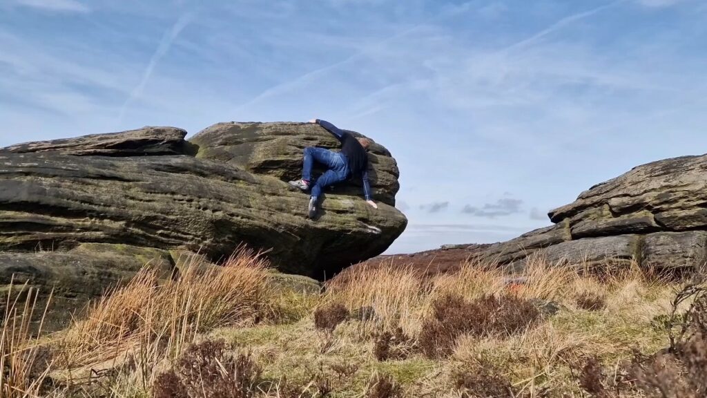 Anyway, I like this one! The opening moves are fun and a little powerful, and the press to finish I found was very satisfying to figure out and execute, dropping the right hand all the way back to the start hold. I imagine it’s the kind of move that’s easily missed. Here it makes a huge difference. The climb definitely suits its name!
